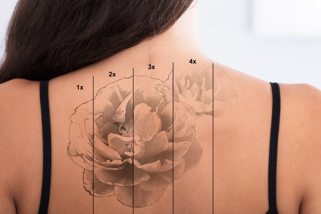 Количество процедур зависит от глубины и цвета пигмента. В среднем требуется от 3 до 10 сеансов с интервалами 4–6 недель для полного удаления.